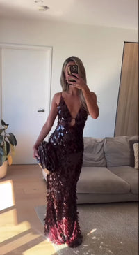 The Sapphire Sequin Maxi Dress in Fig — your perfect sequin maxi dress hire for formal events, graduations, and special occasions.
